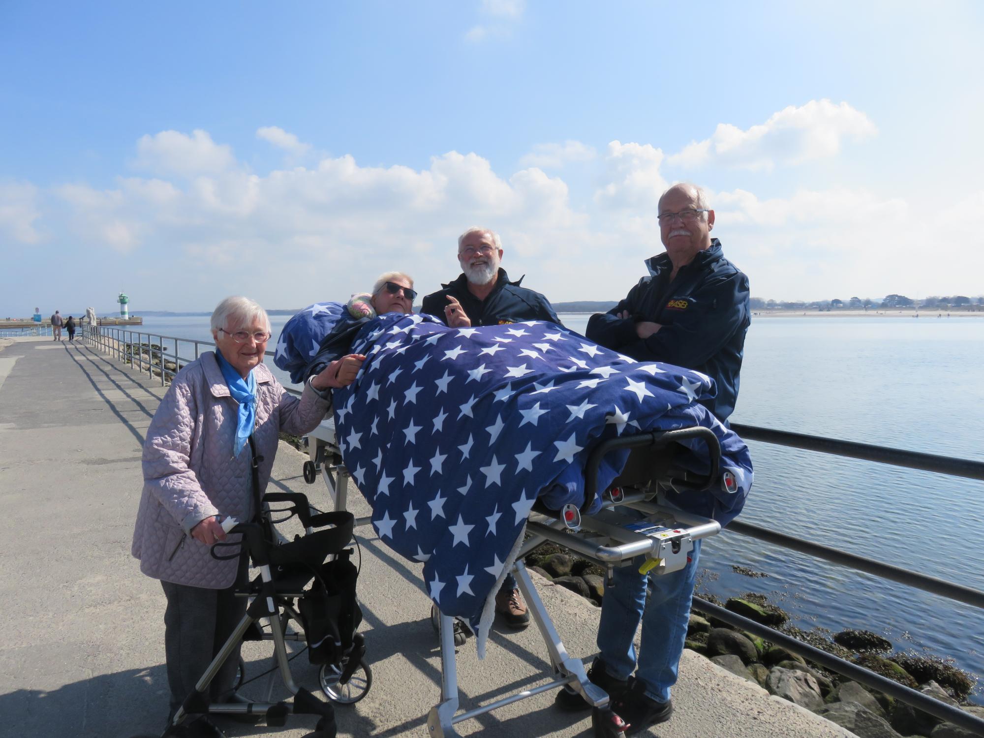 Im Nu waren wir in Lübeck angekommen, dem Geburtsort von Thomas. Hier nahmen wir nach einer herzlichen Begrüßung seine Mutter auf und steuerten schließlich auf Travemünde zu. Sehr schnell kamen wir zu dritt ins Gespräch. Beide erzählten mir, dass die Familie früher sehr gerne Tagesausflüge nach Travemünde unternommen hatte. So wurde mir sehr schnell klar, warum Thomas ausgerechnet diesen Ort als Ziel der Wunschfahrt ausgesucht hatte. Schließlich waren seit dem letzten Besuch dort immerhin fünf Jahre vergangen. In Travemünde angekommen, zog es uns alle zunächst an die Mole. Es war zwar etwas holprig, dort mit der Trage hinzukommen, aber … nichts ist unmöglich!