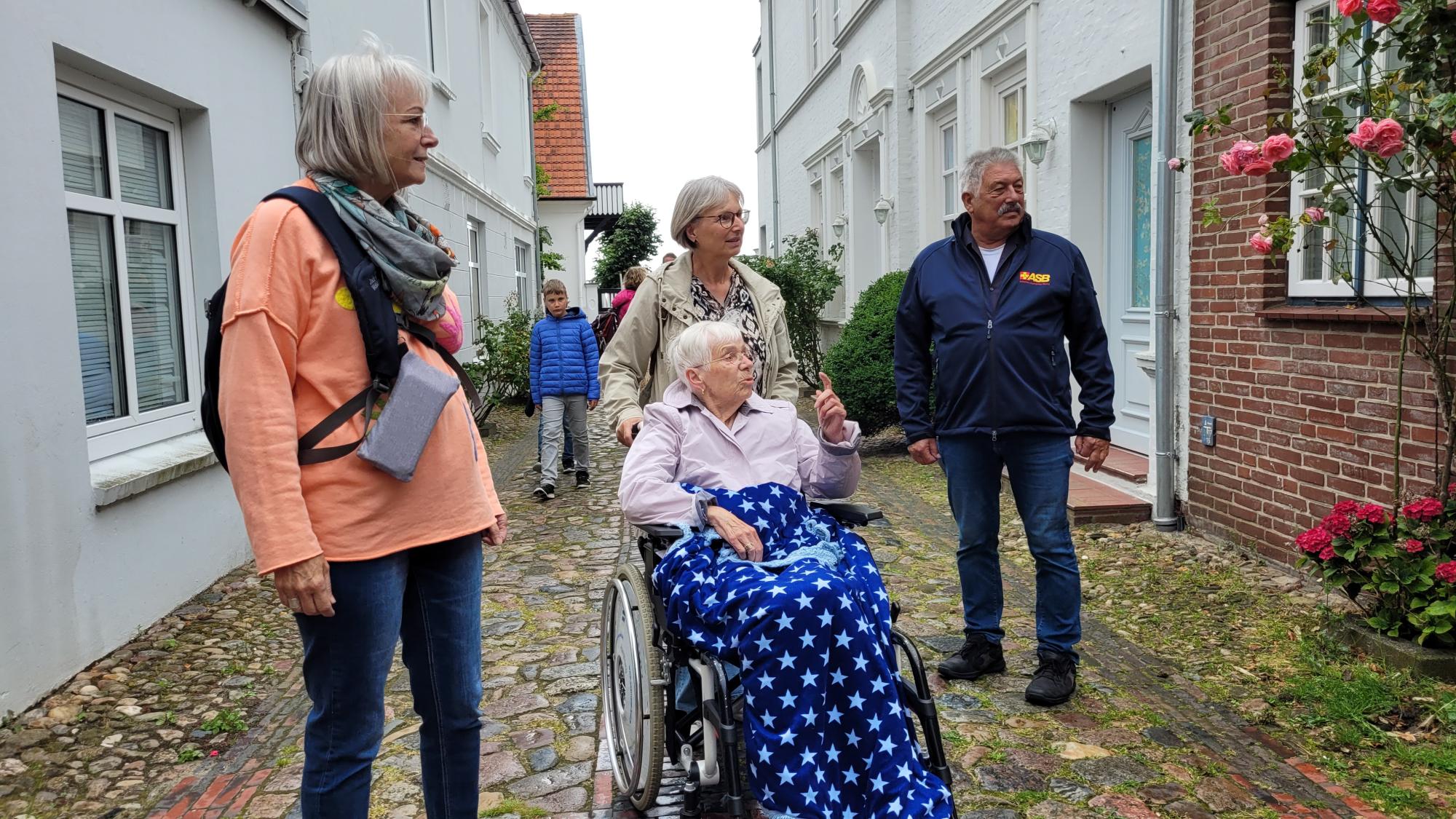 Nach der 50-minütigen Überfahrt erreichten wir Wyk auf Föhr – die Heimatstadt von Annabel und ihrer Tochter. Nach kurzer Suche fanden wir nicht nur die Straße, sondern auch das ehemalige Familienhaus der beiden. Hier konnten sie in Erinnerungen schwelgen. „Damals kannten wir hier jeden Stein in- und auswendig“, erzählten sie uns. Auch die kleinen Seitenstraßen waren von damals kaum zu unterscheiden. „Durch diesen Durchgang hier sind wir damals immer zum Strand gelaufen“, meinte Annabel und deutete dabei auf eine schmale Gasse, die zwischen zwei Hauswänden hindurchführte.