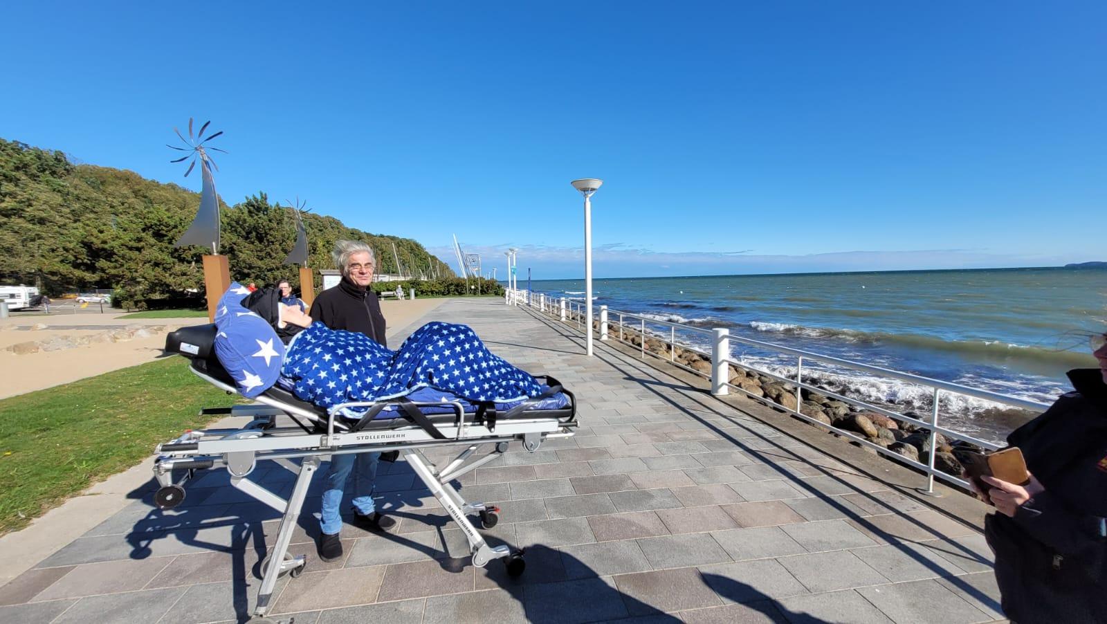 Bei wunderschönem Wetter holten wir unsere heutige Fahrgästin und ihren Lebensgefährten aus dem Seniorenheim in Lübeck ab und fuhren nach Travemünde an den Strand. Es war ziemlich windig – ein tolles Wetter zum Segeln oder Surfen, extra zu Ehren unserer Fahrgästin, einer begeisterten Seglerin, könnte man meinen. Nach einem Spaziergang entlang der Promenade suchten wir uns ein etwas windstilleres Plätzchen mit Blick aufs Meer und auf spielende Kinder. Alle genossen noch einmal die herbstliche Ostsee mit allen Sinnen. Danach ging es zurück nach Lübeck.
