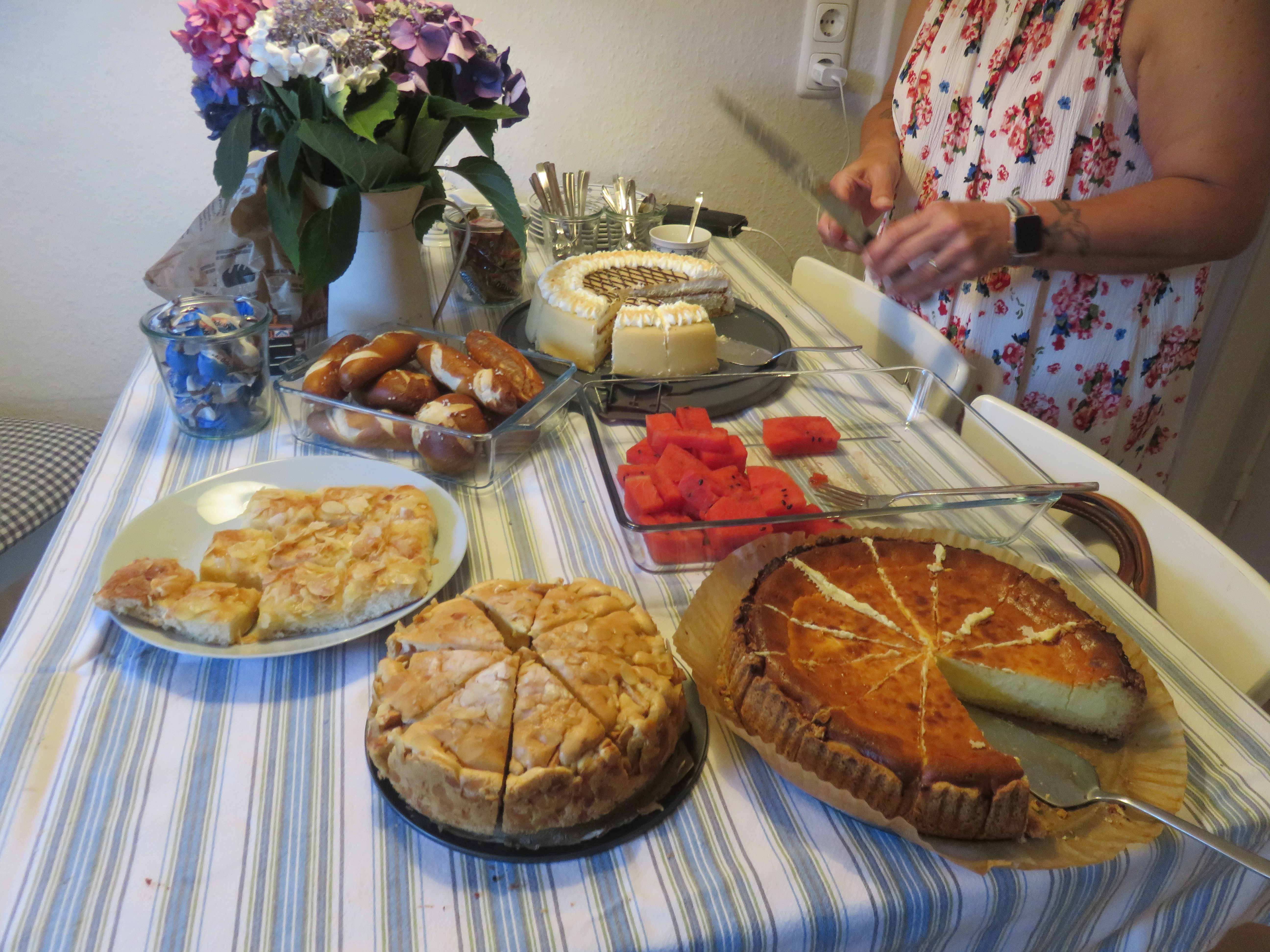 Auf der Terrasse wurde dann der Geburtstagskuchen mit brennenden Kerzen serviert. Dabei wurde ein Geburtstagsständchen für unseren Fahrgast gesungen.