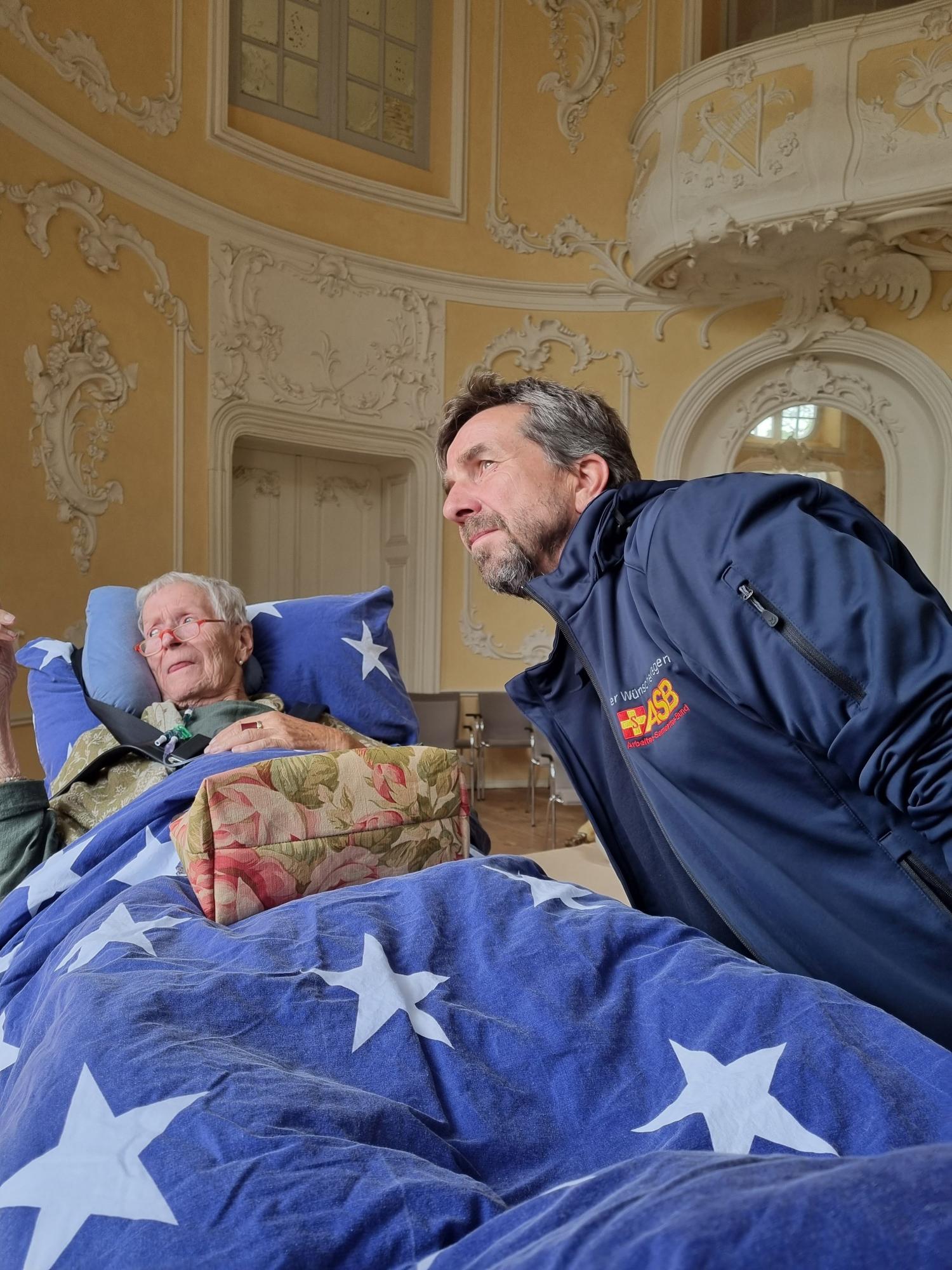 Dort angekommen, wurden wir in das Zimmer unserer Fahrgästin begleitet. Die Begrüßung war sehr herzlich: „Ich bin Ute und wir sagen ‚Du‘.“