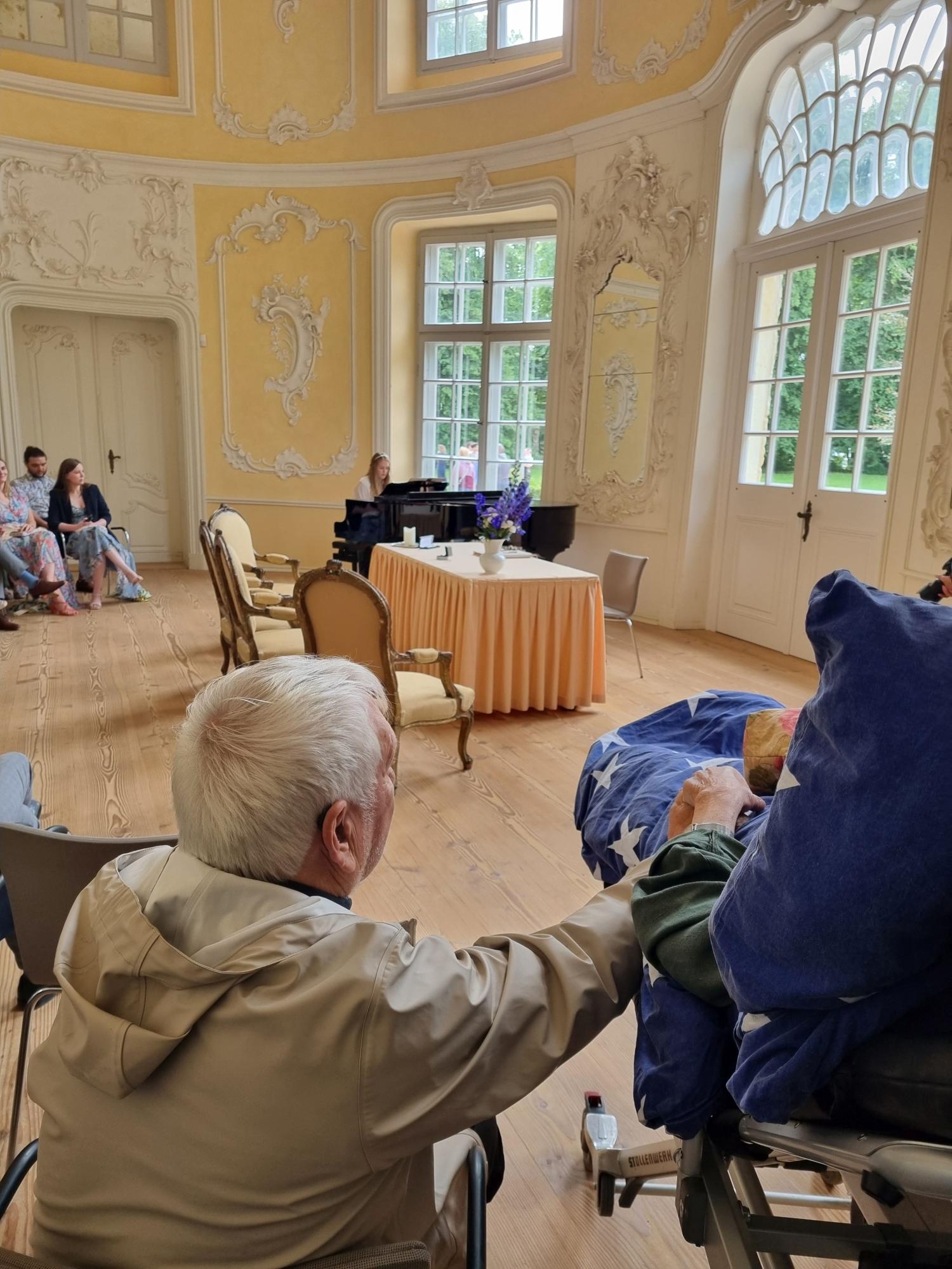 Im Saal des Prinzenhauses hatte Ute von der Trage aus einen guten Blick auf die Zeremonie. In der einen Hand hielt sie ein Taschentuch und in der anderen Peters Hand.