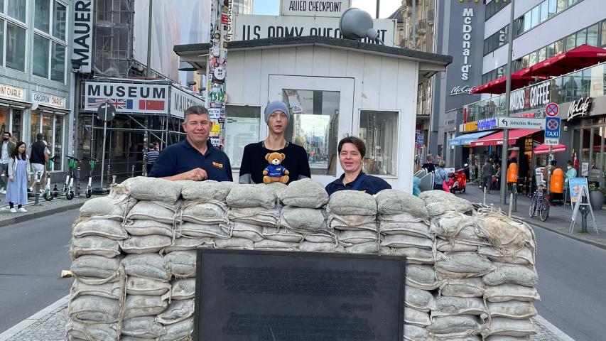 In Lübeck angekommen wartete Nick mit seinem Vater auf uns. Genau so aufgeregt wie wir, da hatten wir ja schon mal was gemeinsam. Die Aufregung verwandelte sich ganz schnell in Vorfreude auf ein besonderes Wochenende. Die Krankheit rückte in den Hintergrund. Wir machten uns direkt auf den Weg nach Berlin. Checkpoint Charly und das Olympiastadion, das waren die beiden Punkte, die Nick in Berlin wichtig waren, er war mit seinen Eltern schon sehr oft dort.