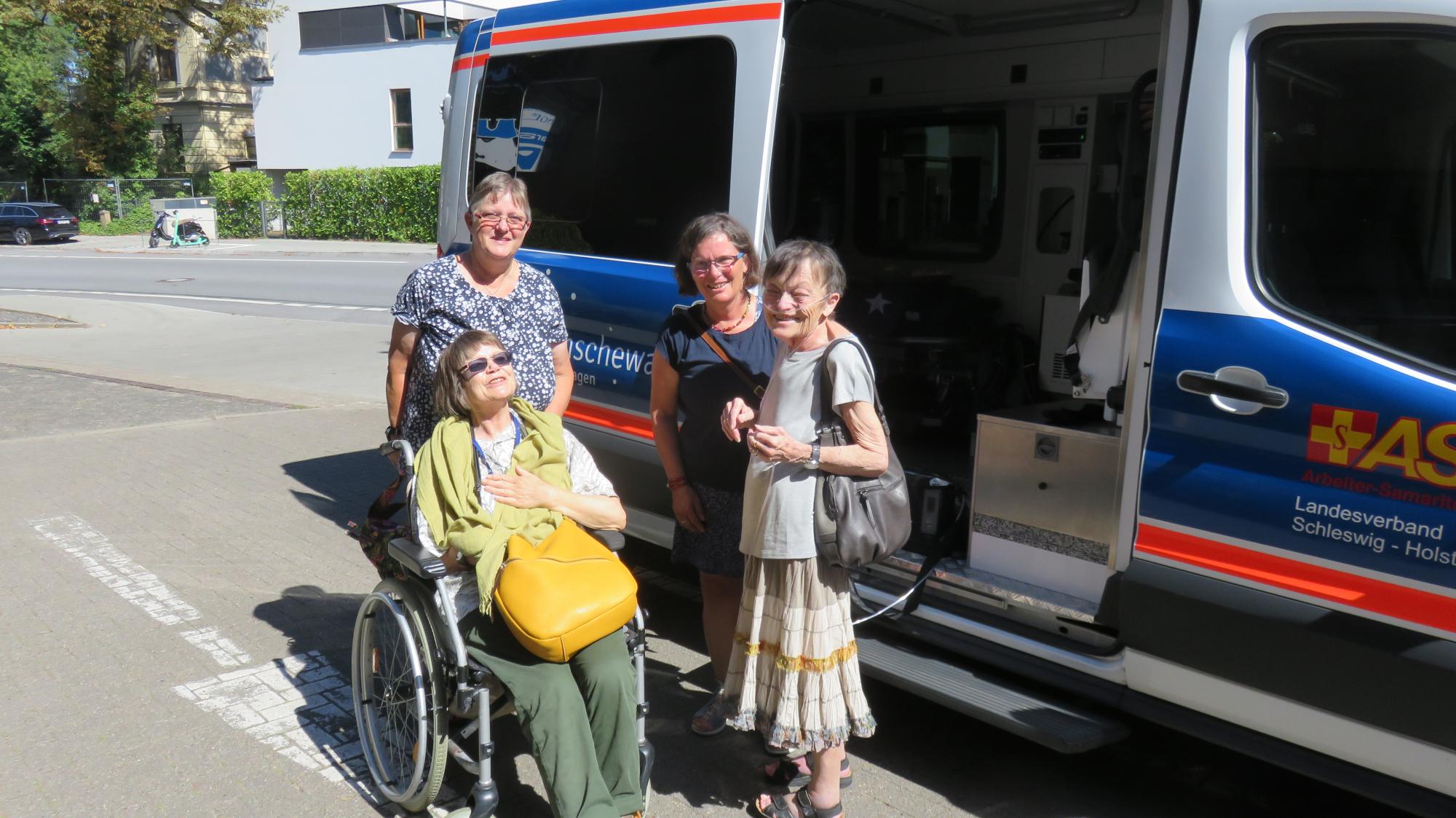 Gegen Mittag rollte der der Wünschewagen auf den Neuen Niendorfer Friedhof in Hamburg und durfte direkt an der Kapelle parken. Groß war die Freude, als Hannelore K. ihre Schwestern traf, die alles vorbereitet hatten.