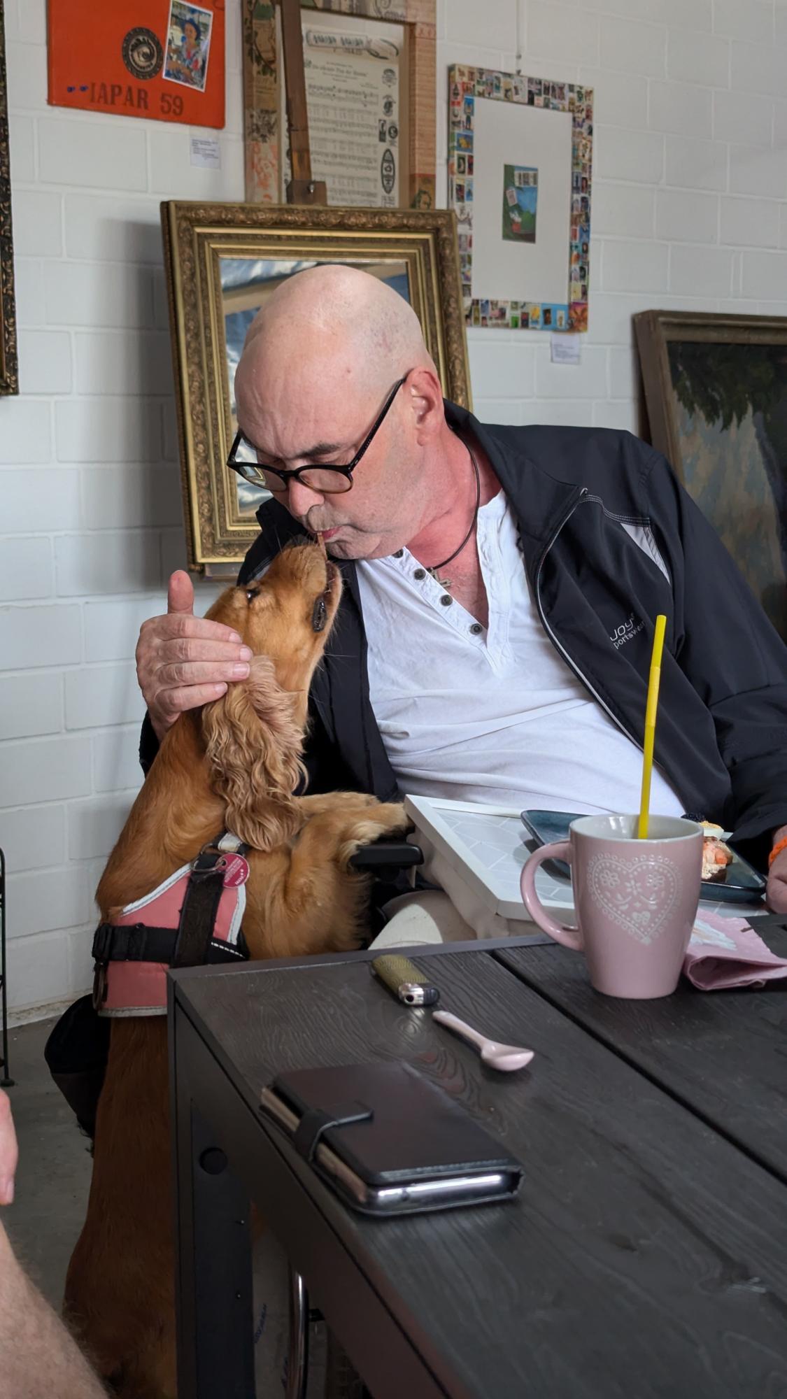 Bevor es Zeit war, sich zu verabschieden, nahm sich Gregor noch einen stillen Moment in seinem Atelier. Nach einer Abschiedszigarette im Atelier und einen ganz besonderen Dank an die liebe Nachbarin Maren, die diese Wunschfahrt vor Ort mit allen Freunden maßgeblich mit organisiert hat, machten wir uns auf den Rückweg. Mit dabei ein anderes Kunstwerk – ein neuer Begleiter für Gregor in seinem Pflegeheim. Es würde dort einen besonderen Platz finden, als Erinnerung an diesen unvergesslichen Tag, an die Menschen, die ihn lieben, und an die unerschöpfliche Kreativität, die ihn ausmacht.