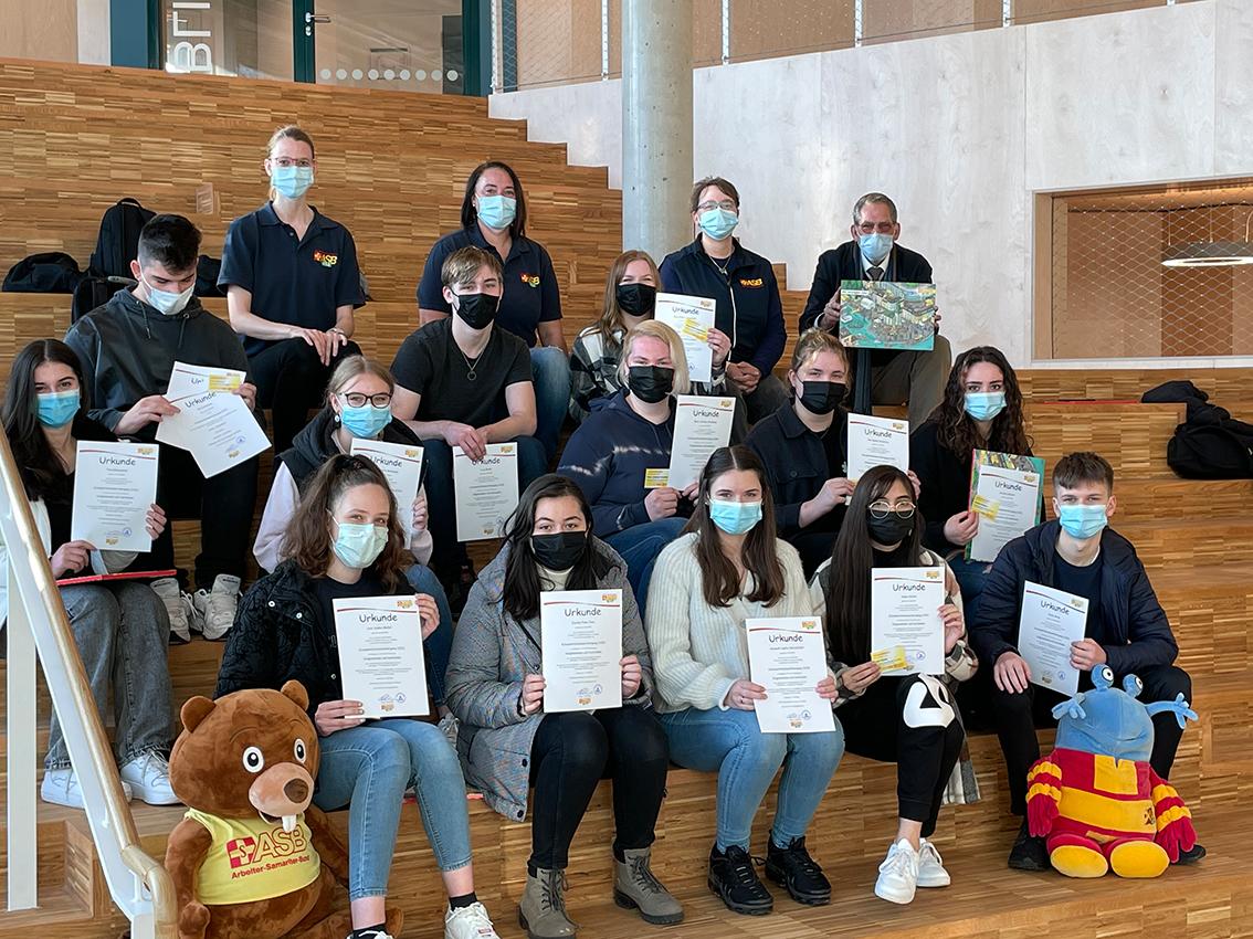 Nach sechs Übungstagen und drei Prüfungen nehmen die frischgebackenen ASB-Schulsanitäter:innen nun abwechselnd ihren Dienst auf.